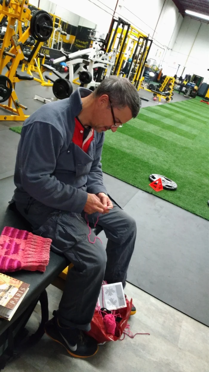Then I sewed up the sides while my son was doing a fitness session at the gym.