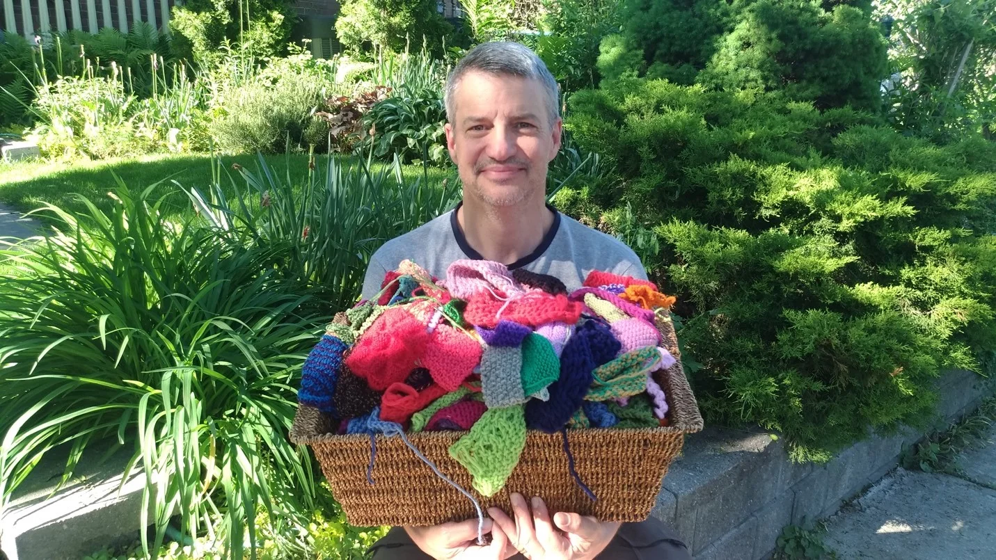Audience members are having fun joining in on #BYOK (Bring Your Own Knitting) – or knitting with the needles and yarn we provide during the show. It’s a delightful experience post-show to see the knitting people have done while I’m performing. I have been casting off our audience knitting on non-show days and seeing that many in our audiences sure know how to knit! I plan to incorporate all these gorgeous knitting bits into my next big knitting project: something to represent our time together, talking about not just knitting, the craft, but what knits us all together.